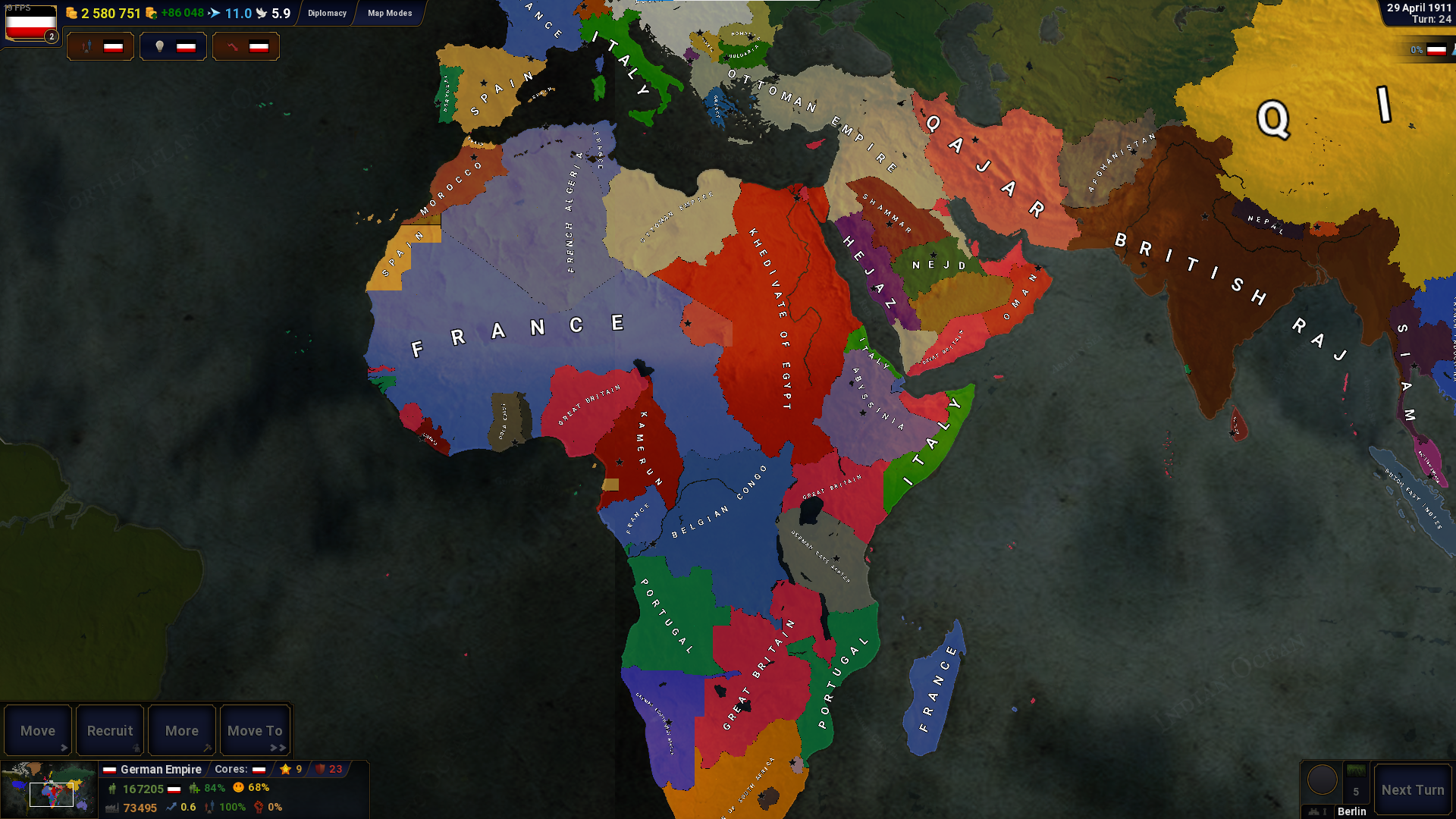 kabilelere bolersem fazla devlet performansi dusurur ileride gerek duyarsam yapabilirim. Hive Buhara veya Finlandiya gibi ulkeleri ozerk oldugu icin bagimsiz gostermedim fakat yurtlari duruyor. Bosna 1908 de annexlendi 1908 oncesinde gecseydi dedigini yapardim. kore japonya vasali olarak basliyor ve agustos 1910 da gelen eventle oyuncuya koreyi annex veya vasal haliyle devam ettirme sansini veriyor. vittorio o donemde yasli o konuda haklisin duzeltecegim. oneriler icin tesekkur ederim dostum <3