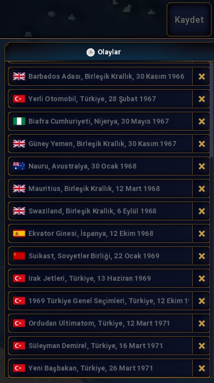 Konu süleyman demirel'in başbakanlık dönemini yer alıyor (1965-1971) 19 event vardır , iyi oyunlar.