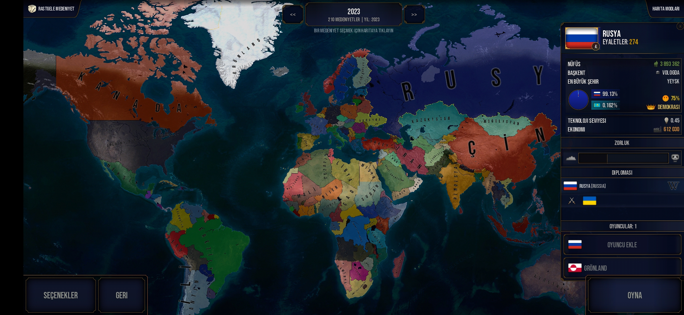 Tüm ülkeler ve yerleri farklıdır,böylece farklı bir haritada oynamak isterseniz bu senaryo tam size göre!