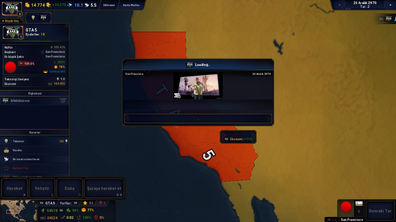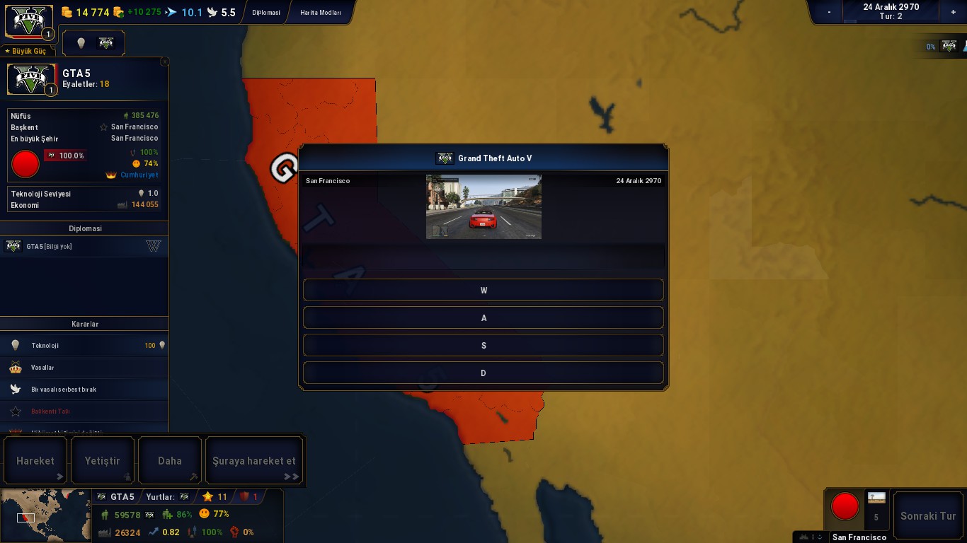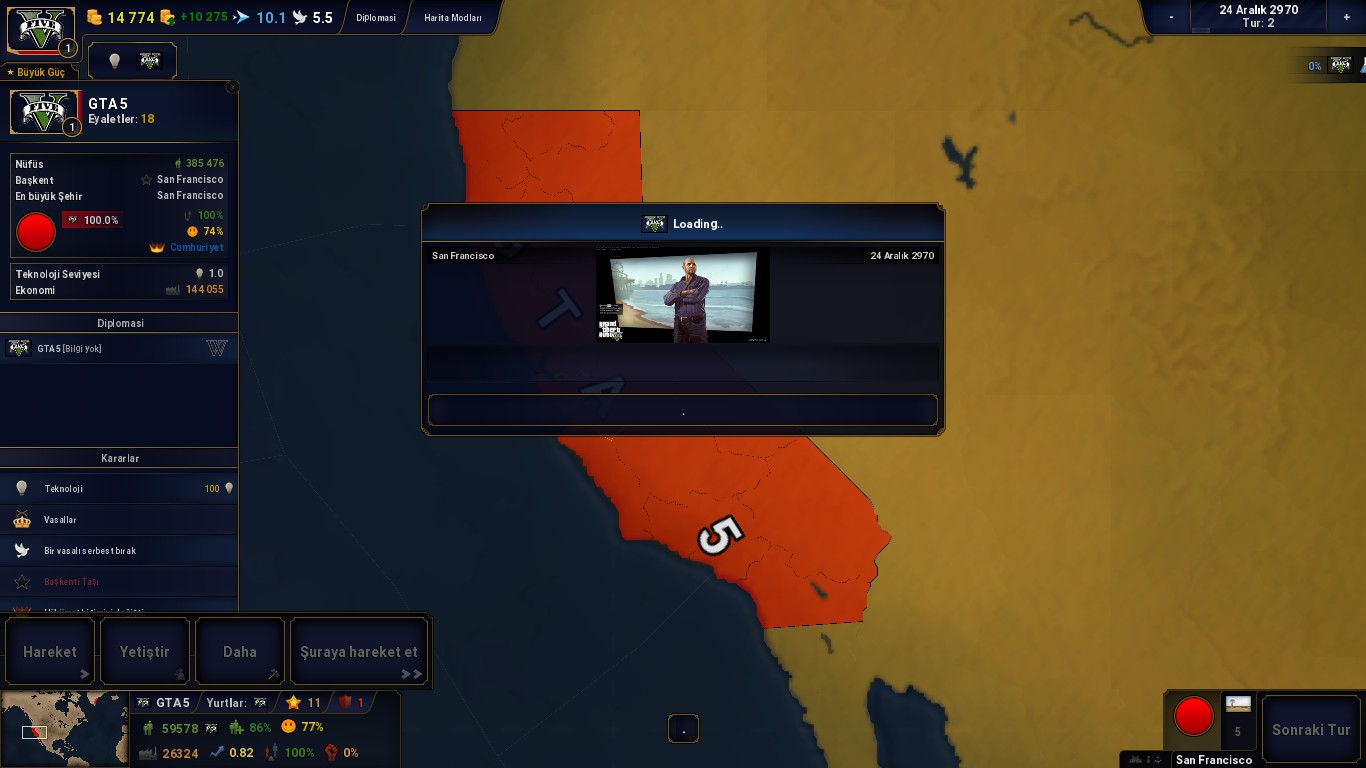 Bu senaryoda GTA San Andreas oyunundaki çeteleri Amerika Birleşik Devletleri haritası üzerine entegre ederek keyifli bir senaryo çıkardım. Notlarda bir duyuru yaptım, ilgili arkadaşlar bana ulaşabilirler. Senaryonun sevdiğiniz ve sevmediğiniz yanlarını paylaşırsanız sevinirim, iyi oyunlar, keyifli akşamlar dilerim.