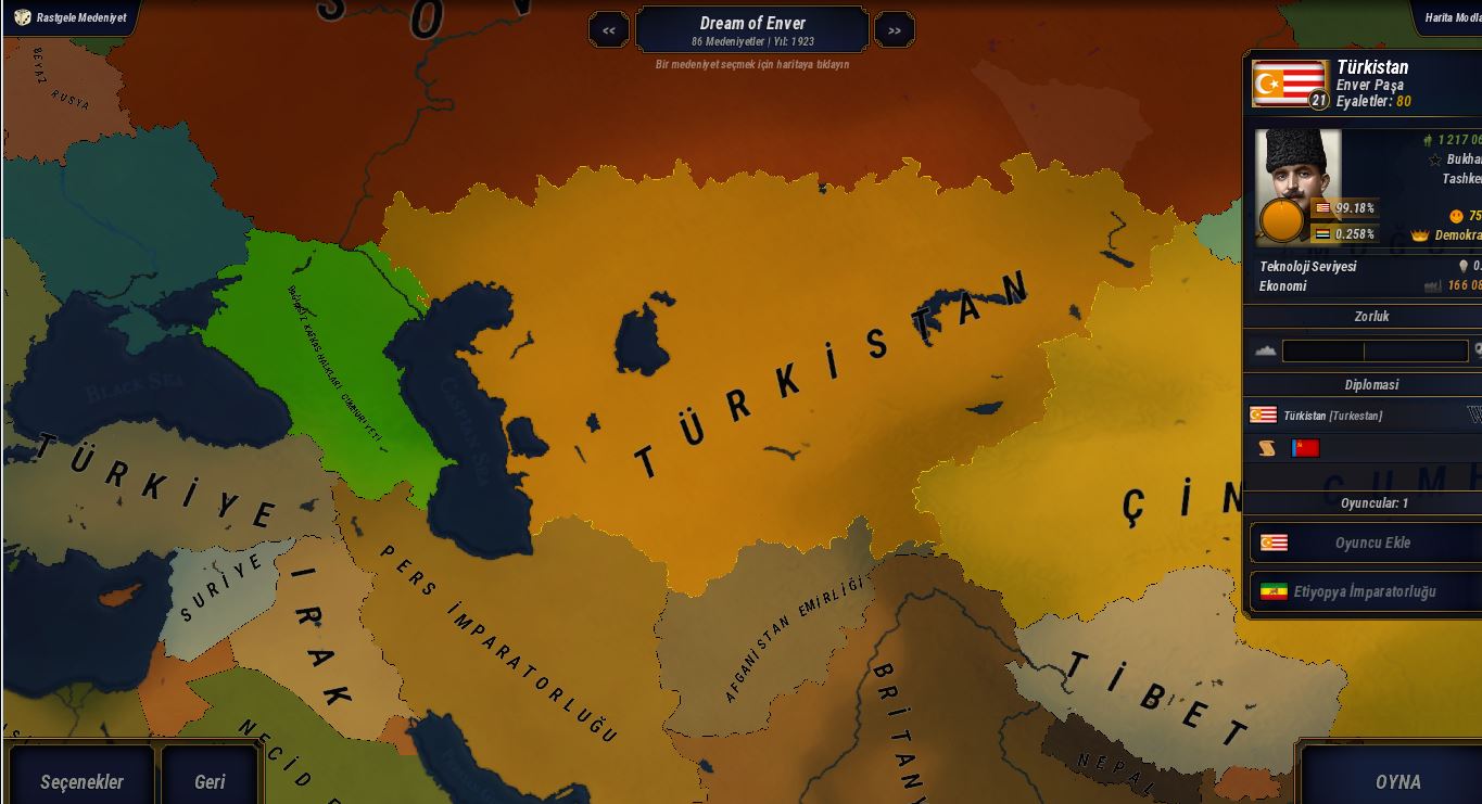 Konuda Osmanlı,Moğol İmparatorluğu,İran(konsept)iç savaş ,azerbaycan,faşist devletler gibi birçok evlet eklendi.